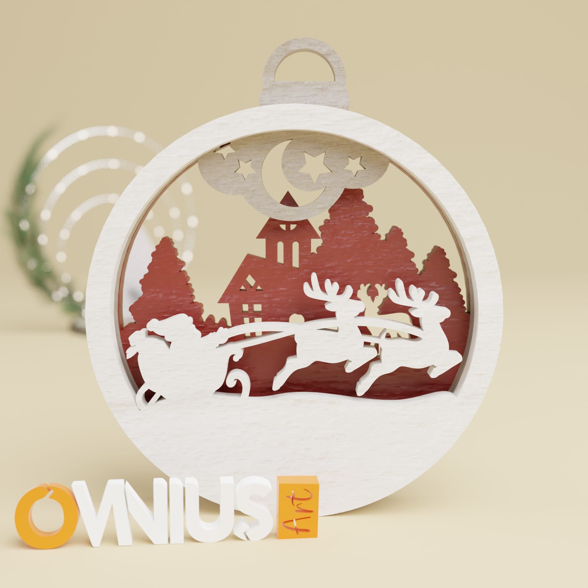 Tražite li savršenu božićnu kuglicu djed mraz u saonicama koja će pričati čarobnu blagdansku priču? Naša 3D kuglica stvara zimski prizor u tri sloja. Gornji sloj prikazuje Djeda Mraza u saonicama koje vuku dva soba, dok se u sredini naziru mali mjesec i zvjezdice, a u pozadini silueta kućice i borova. Ovaj unikatni 3D dizajn osigurat će da vaša božićna kuglica djed mraz u saonicama privuče poglede.