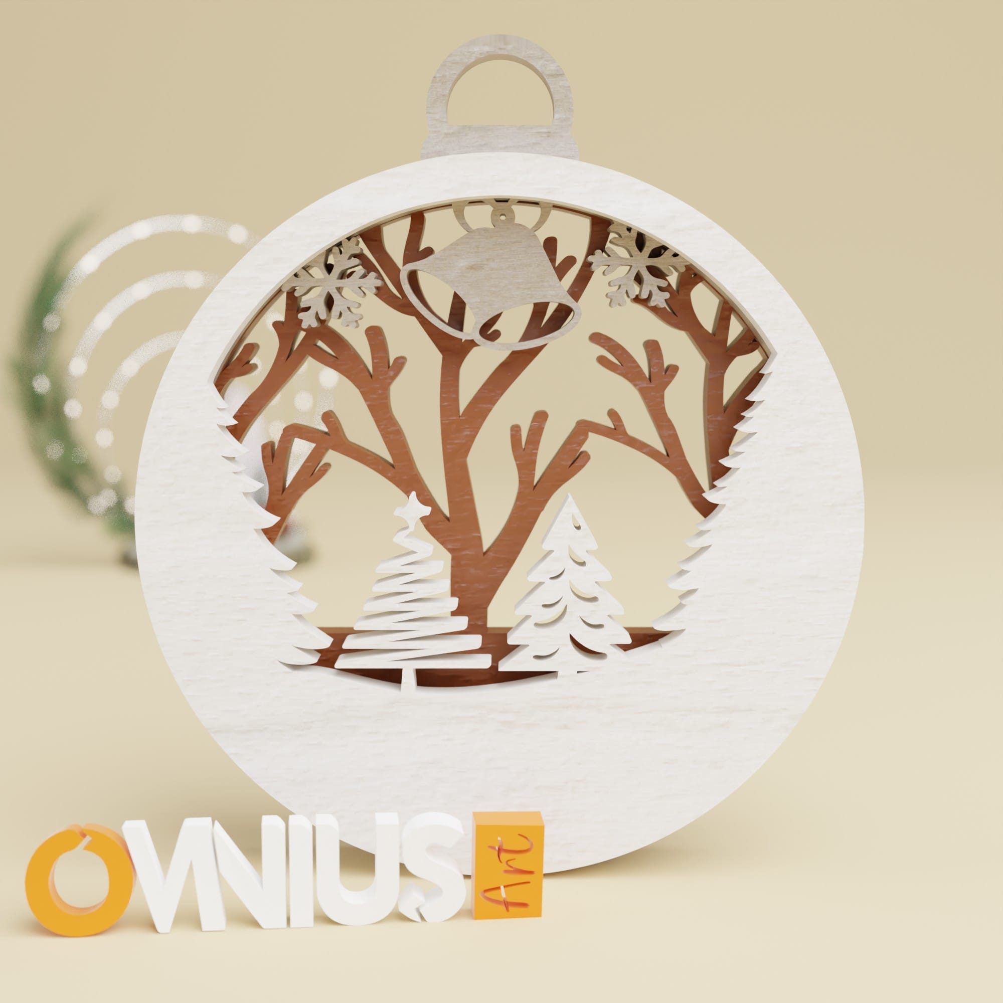 Ljepota zimske šume! Ova kuglica za bor kolekcija borova izrađena je od tri sloja šperploče ukupne debljine 12 mm, široka je cca 8 cm i dolazi s ukrasnom špagom. Savršen je drveni ukras za vaš bor.