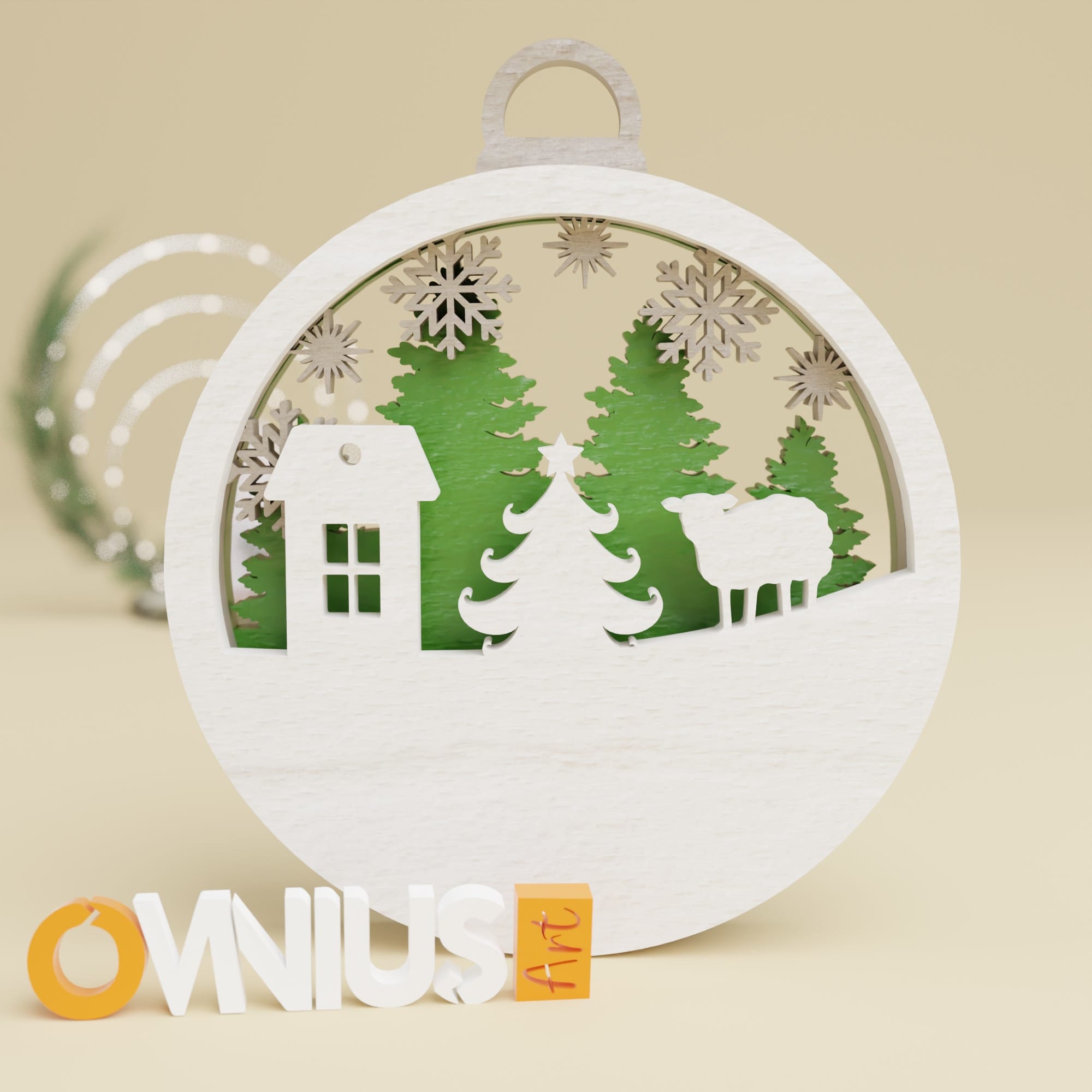 Božićna 3D kuglica za bor kuća bor ovca