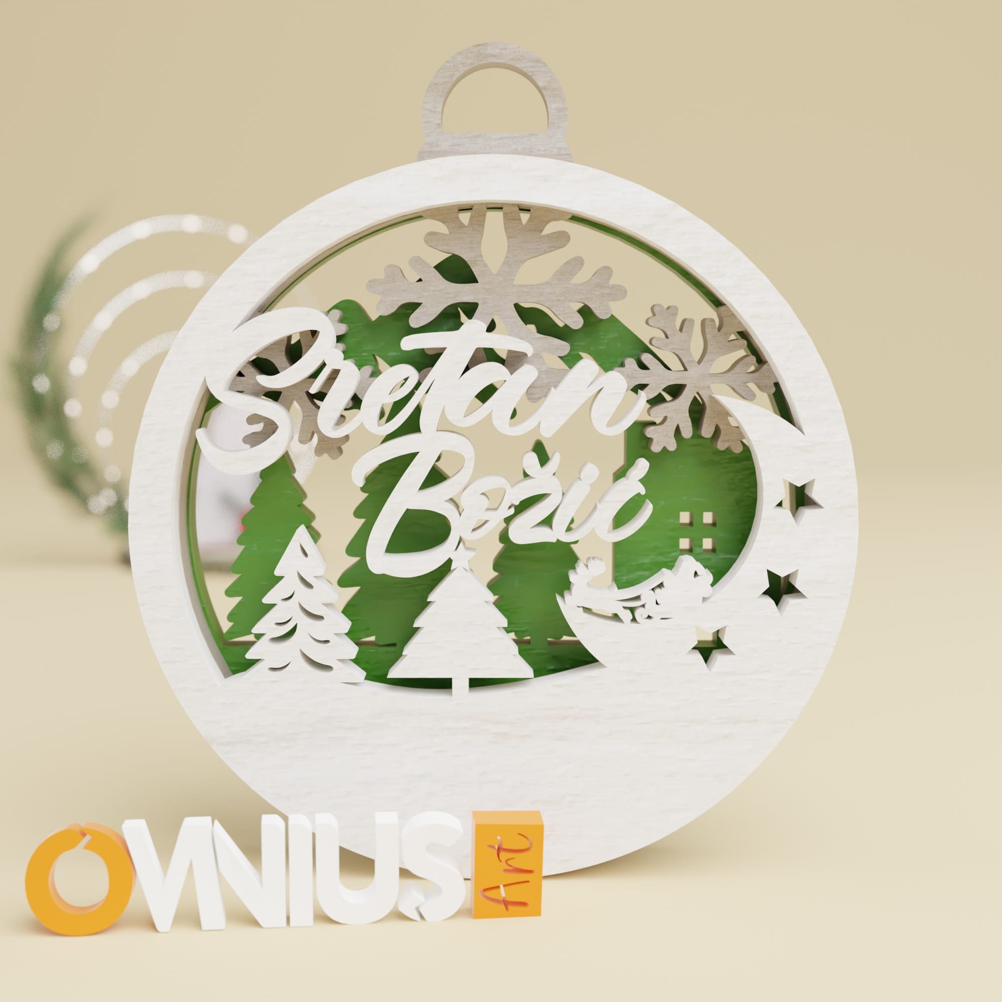 Tražite li savršeni ukras za Božić? Naša kuglica za bor natpis sretan božić koja nosi najtopliju želju stvara svečani prizor u tri sloja. Gornji sloj prikazuje natpis “Sretan Božić”, dok su u sredini nježne pahuljice. Silueta kuća i planina u pozadini naglašava blagdanski ugođaj.