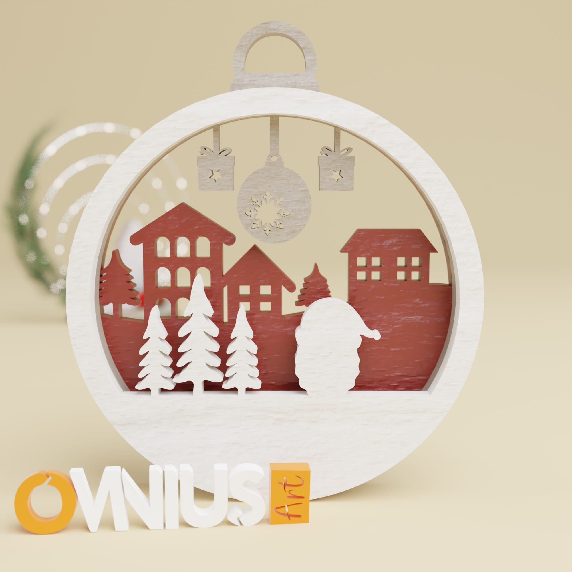 Tražite li savršeni ukras za Božić? Naša kuglica za bor sa snjegovićem unijet će dašak zimske čarolije i stovriti blagdanski prizor u tri sloja. Gornji sloj prikazuje tri bora i siluetu snjegovića, a u sredini su viseći pokloni, mjesec i zvijezda. Silueta tri kuće i borova u pozadini daje dojam topline.