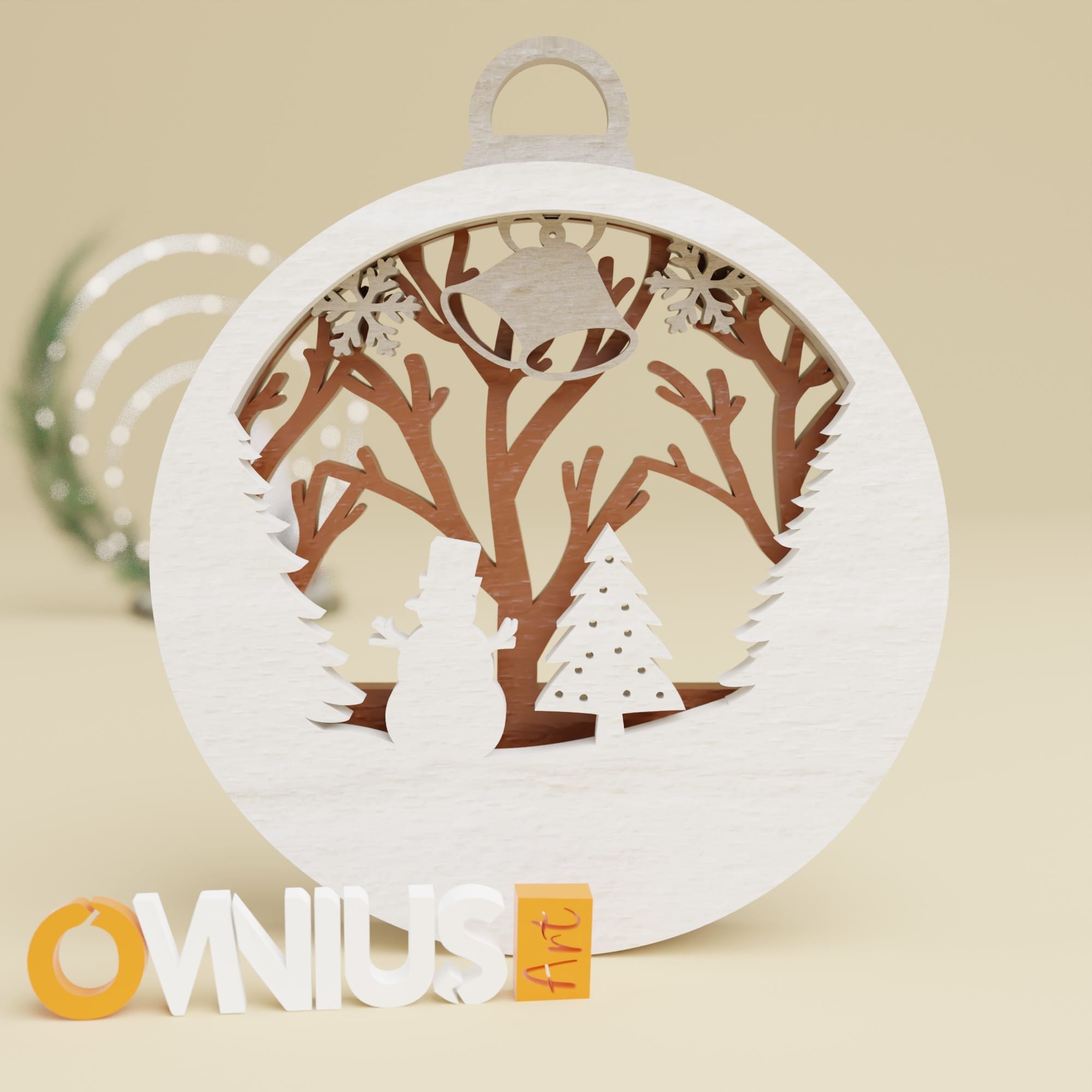 Tražite li savršeni ukras za Božić? Naša kuglica za bor snjegović i borovi koja priziva dječju radost stvara veseo zimski prizor u tri sloja. Gornji sloj prikazuje snjegovića i borove, dok su u sredini zvonce i pahuljice. Zadnji sloj s drvima bez lišća dočarava tipičan zimski pejzaž.