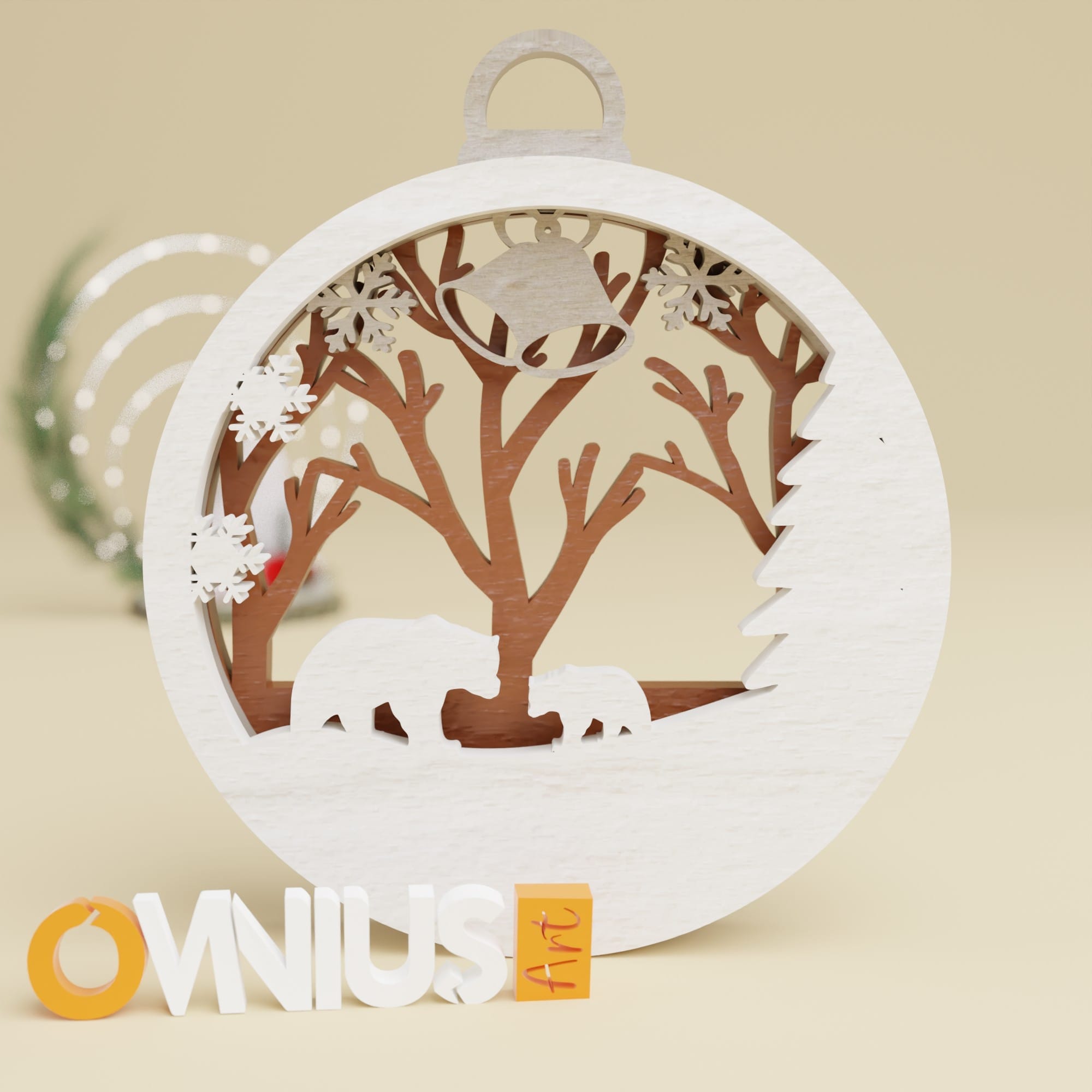 Božićna 3D kuglica za bor veliki i mali medvjed